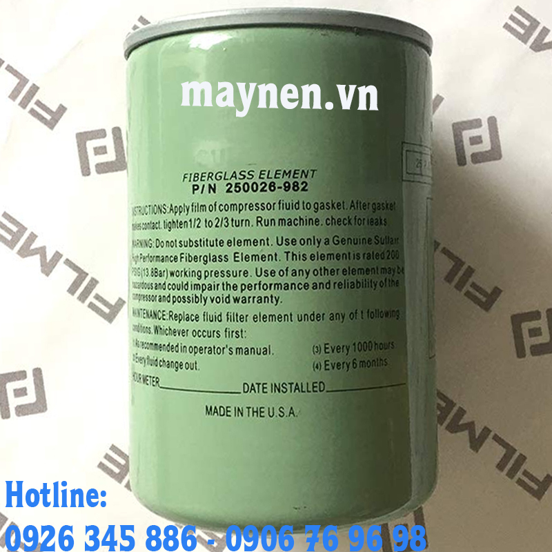 Áp lực làm việc: Lọc dầu Sullair 250026-982 có áp lực làm việc thường ≤ 1.4bar.