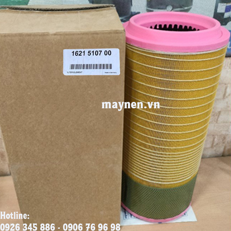 Lọc gió (lọc khí) máy nén khí Atlas Copco 1621 5107 00 / 1621 5075 00 là một bộ phận quan trọng của máy nén khí góp phần làm sạch không khí đầu vào. Bộ lọc gió thường được lắp ngay tại cửa hút của máy, ở vị trí này lọc gió có thể loại bỏ được những hạt bụi hay các vật rắn khác khỏi dòng khí nhằm hạn chế sự ăn mòn hay trầy xước ở các chi tiết do những tạp chất này gây ra. Nói cách khác lọc gió giúp bảo vệ được bộ tách dầu, lọc dầu và các chi tiết chuyển động khác.