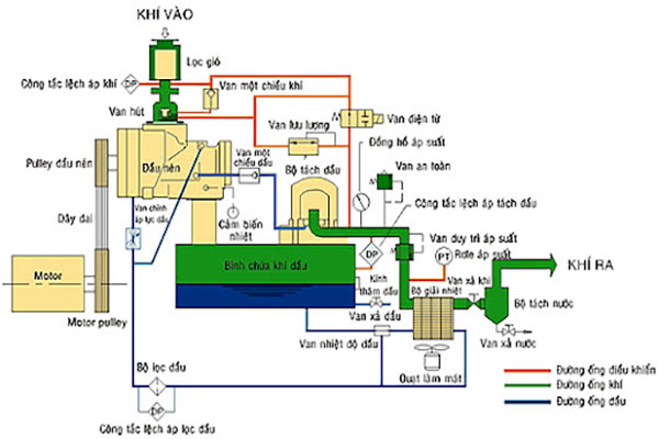 Cấu tạo máy nén khí cao áp bao gồm các bộ phận như sau: